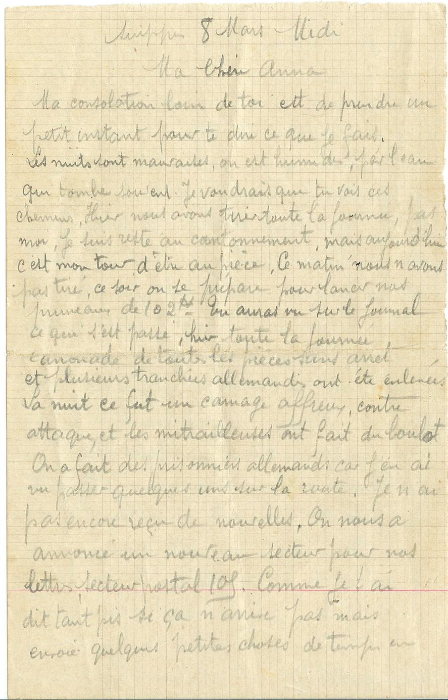 Ce dossier pédagogique est destiné aux élèves et aux enseignants du premier et du second degré. Il s’appuie sur des documents sélectionnés en fonction de leur intérêt pédagogique qui proviennent des fonds des Archives départementales de l’Allier. Une grande partie d’entre eux provient du fonds Melin (117 J) .Ce fonds d’archives familiales déposé aux archives départementales au cours de l’année 2010 relève de la série J qui comprend les documents entrés par voie extraordinaire: achats, dons, dépôts. Il est essentiellement composé de la correspondance entre les époux Albert et Noémie Melin pendant la Première Guerre mondiale. Il comprend aussi une série de photographies réalisées par Albert Melin dans la région de Soissons.
